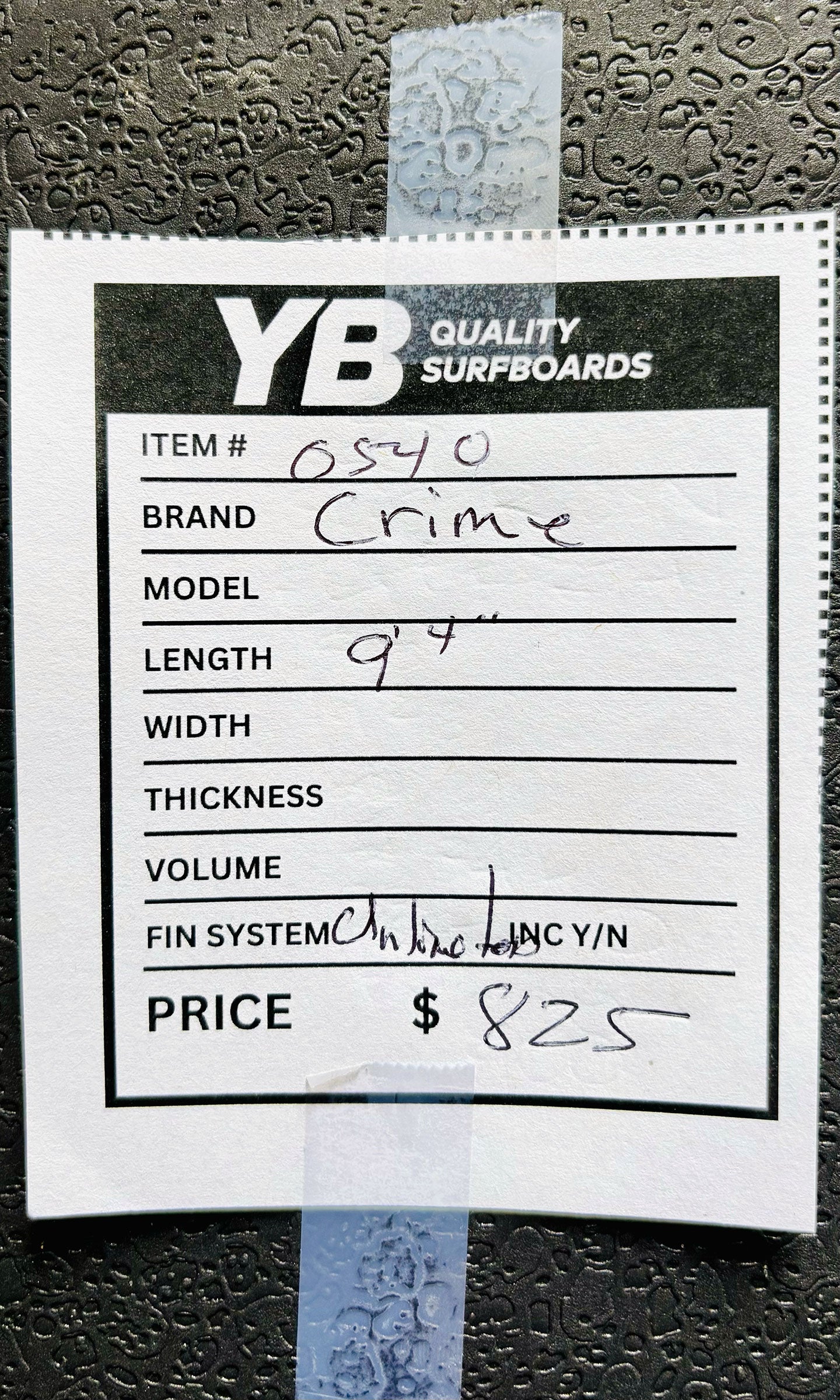 This is a Crime Surfboards 9'4" 67L Involvement Longboard. Board in perfect condition. Board comes with fin and leash. Ready to shred
